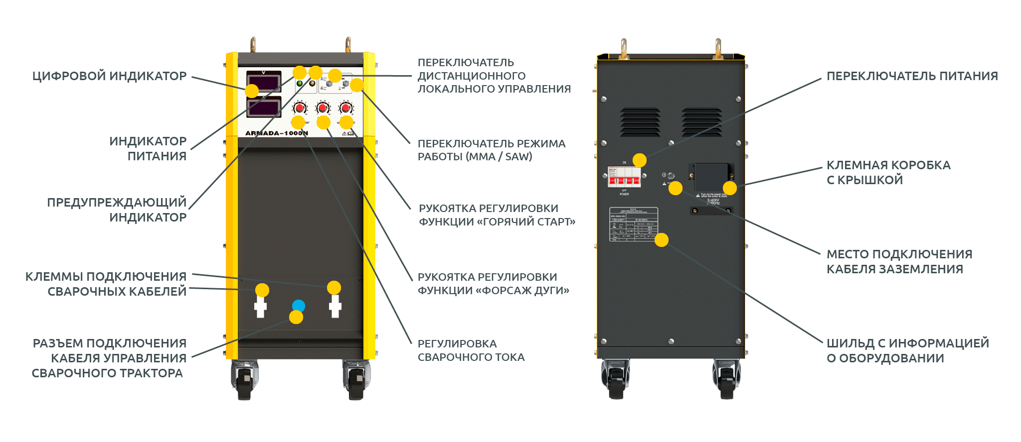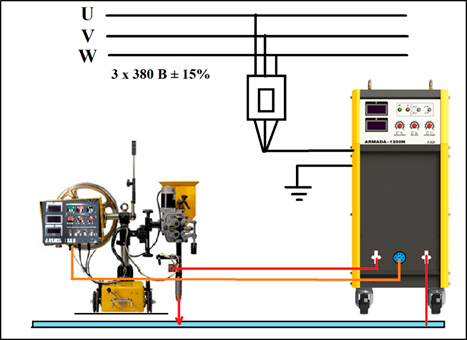 Сварочный трактор HUGONG ARMADA 1000N 029646 Промышленный многофункциональный сварочный аппарат для автоматической сварки под флюсом (SAW) с функцией ручной дуговой сварки покрытым электродом (ММА) и воздушно-дуговой строжки (Googing). Источник сварочного тока в составе аппарата обеспечивает сварочные процессы с жесткой ВАХ «CV» (Constant Voltage) и падающей ВАХ «СС» (Constant Current) при 100% ПВ с током сварки до 1 000 А. Возможно выполнение сварных изделий из всех видов стали с толщинами от 3 до 350 мм.