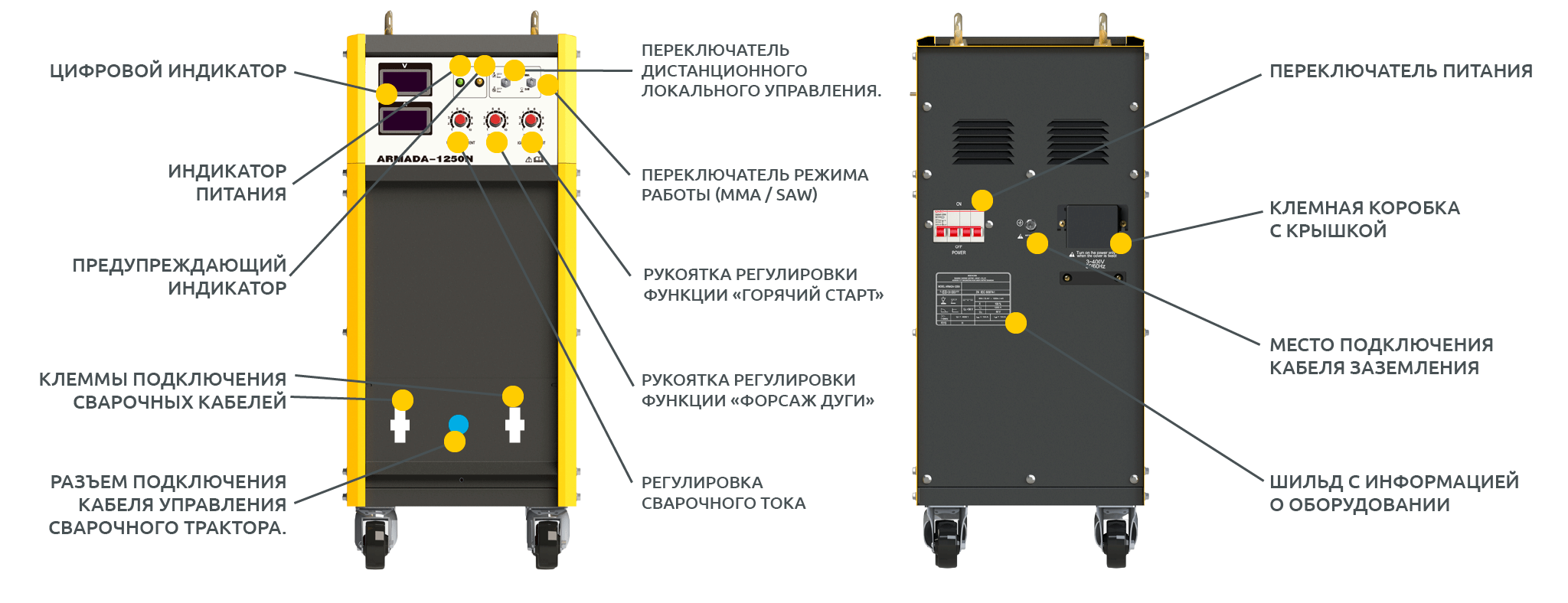 Переключатель питания источника сварки (расположен на задней части аппарата)