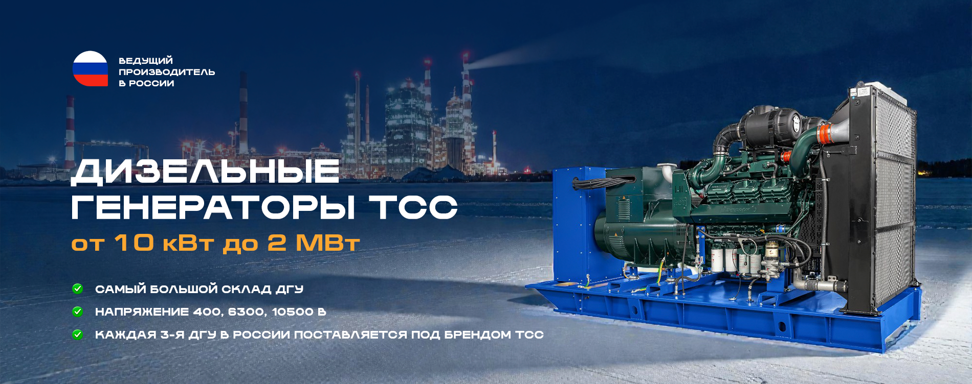 Дизельный генератор 1000 кВт - Впечатляющие преимущества полностью раскрываются при длительной эксплуатации в режиме основного или резервного источника электроснабжения, когда на первый план выходят показатели расхода топлива, надёжности, длительности сервисных интервалов, адаптивности к приёму нагрузки. Дизельные генератор 1000 кВт ТСС спроектированы специалистами инжинирингового центра ГК ТСС с полным учётом потребностей отечественных заказчиков и условий эксплуатации.