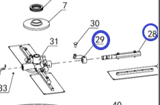 Ось лопасти в сборе со ступицей TSS DMD/DMR1000H,L/Blade fixer + Adjusting device TSS DMD/DMR1000, №28+№29 (PT3628+PT3629)