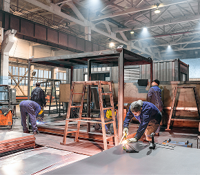 Цех сборки и комплектации блок-контейнеров ТСС позволяет не только воплощать различные конструктивные решения, отвечающие техническим заданиям, но и поставлять готовые изделия в фирменных цветах заказчиков.