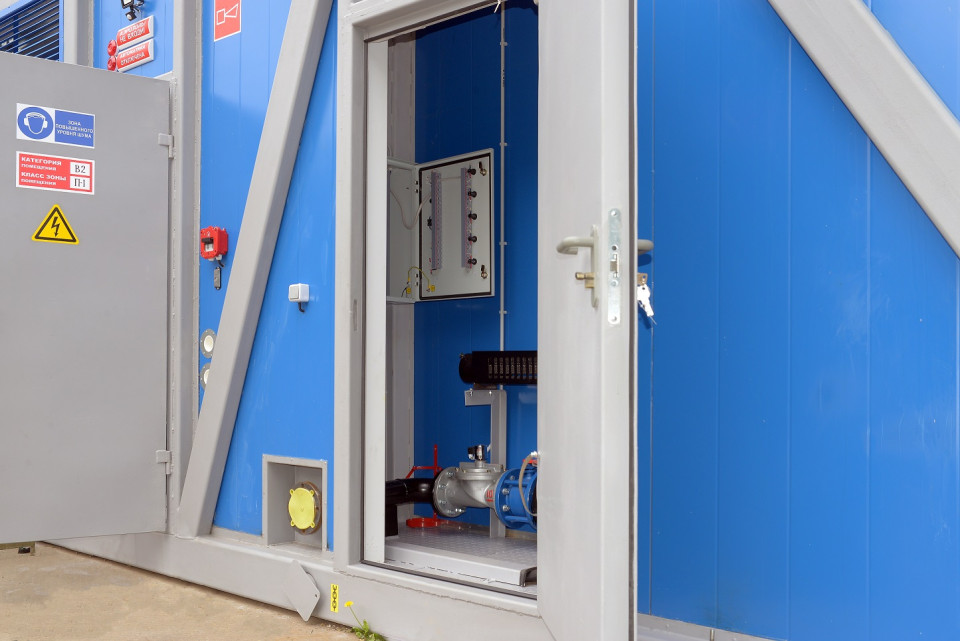 Внутри размещены 42 ячейки типа КСО-298М с полным соблюдением требований к работе оперативного персонала, а также предусмотрена АСУ ТП собственной разработки на комплектующих российских производителей. ДГУ подключаются к ЗРУ.